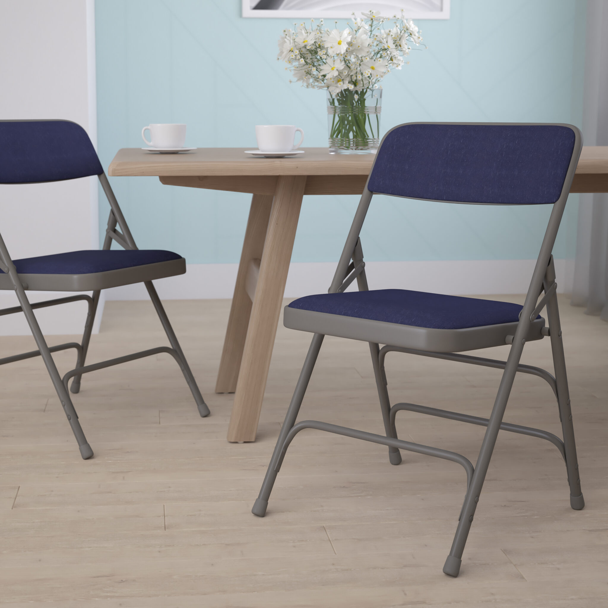 GRAY FRAME NAVY FABRIC SEAT AND BACK |